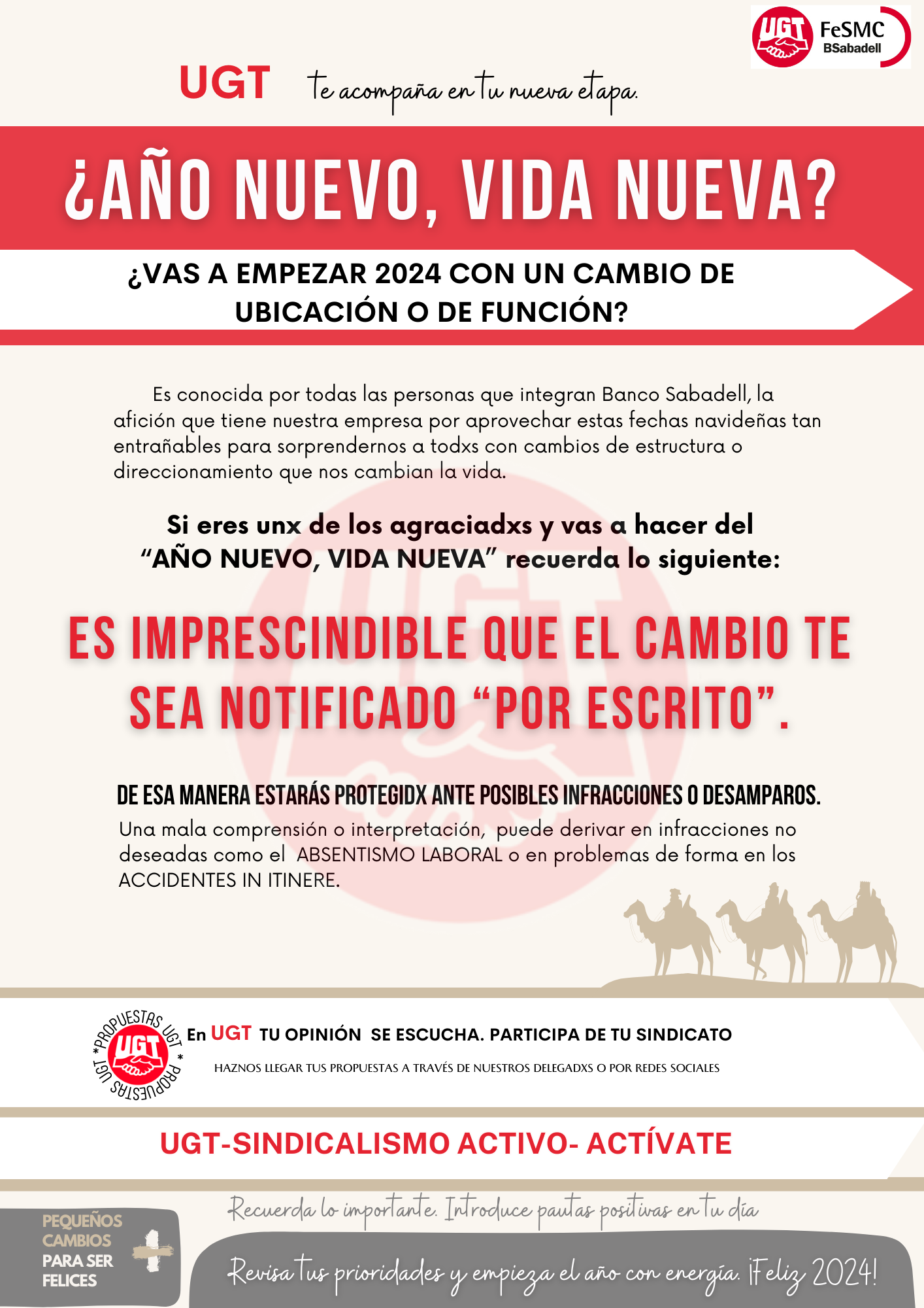 UGT TE INVITA A COMENZAR DE NUEVO EN 2024 REFLEXIONA E INTRODUCE PEQUEÑOS CAMBIOS PARA MEJORAR EN TU DIA A DÍA