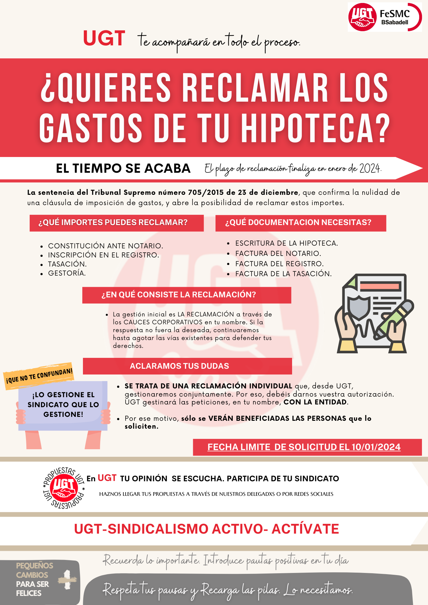 UGT estará contigo en todo el proceso. CONSULTA TUS DUDAS CON TU DELEGADX DE UGT o a nivel centralizado en el email UGT@bancsabadell.com