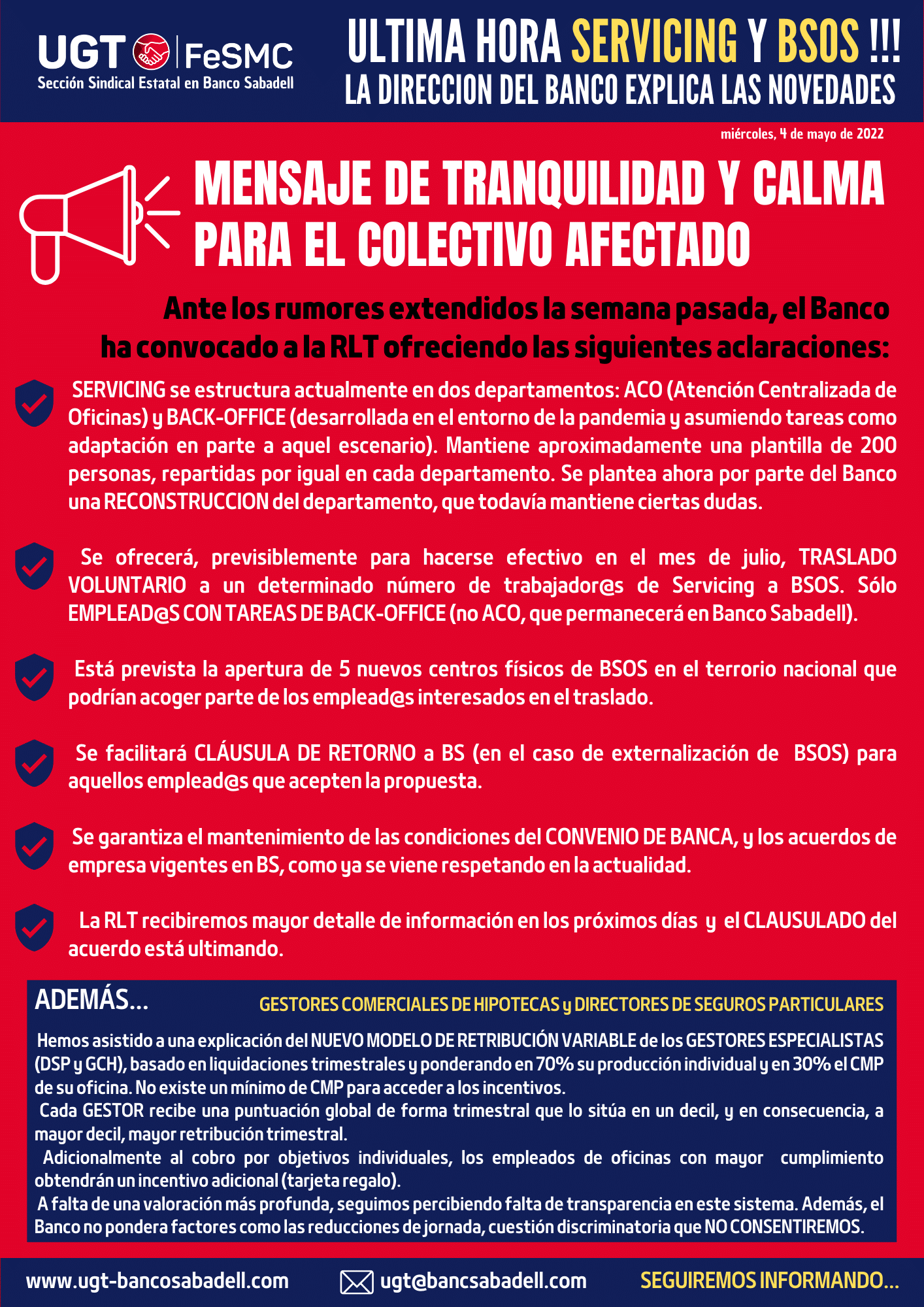 Ante los rumores extendidos la semana pasada, el Banco ha convocado a la RLT ofreciendo las siguientes aclaraciones: